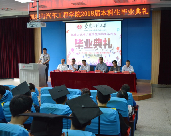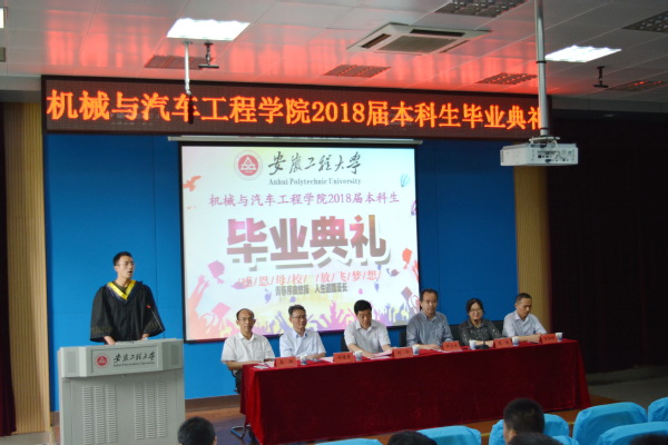 毕业典礼在雄壮的国歌声中拉开了序幕,伊长文宣读澳门六合彩官方网址 2018届安徽省普通高等学校品学兼优毕业生名单与安徽工程大学优秀毕业生名单。随后,校党委书记刘宁致辞,对学院毕业生顺利学业、即将踏上新征程表示衷心的祝贺。在离别之际,刘宁书记对于即将踏入社会的毕业生悉心叮嘱了三点:一是不忘初心、坚持梦想;二是励志前行、勇于担当;三是求真力行、勇于创新。最后刘宁书记深情寄语,母校永远是同学们的坚强后盾,并祝同学们前程似锦,一帆风顺。