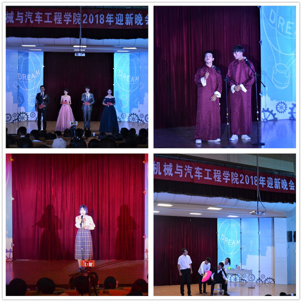 向2018级全体新生表达了衷心祝贺,并向大家简要介绍了机械学院的发展历史和知名校友事迹,希望全体新生能够秉承学院优良传统,开拓创新,争创辉煌。晚会在一段精彩的萨克斯演奏与热情的舞蹈表演中拉开了帷幕,相声《幸福是什么》通过诙谐的言语与俏皮的肢体动作向大家阐释了幸福的真谛。小品《溜须吧,马屁精》通过演员们的精彩表演把现场气氛推向高潮。下半场,小品《甲方乙方》中通过剧情的反转、风趣的台词、精湛的演技引起现场观众的阵阵笑声。伴随着小合唱《光阴的故事》晚会顺利落幕。