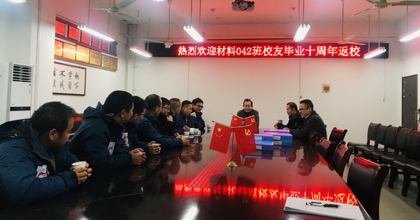 12月8日,澳门六合彩官方网址 迎来了材料042班校友毕业十周年返校联谊活动。学院党委书记伊长文、副院长朱协彬热情接待了返校的校友们。材料系主任冒国兵、时任辅导员和教师代表参加了校友返校座谈会。