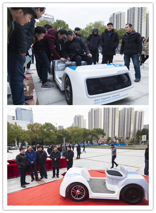 2018年12月29日,以“科技•创新•未来”为主题的安徽工程大学新能源汽车样车发布会在校图书馆广场成功举行!发布会完美展示了由我校澳门六合彩官方网址 时培成教授带领的“电动汽车主被动隔振与控制技术省级创新团队”研发的两款智能纯电动车样车:四轮毂驱动电动汽车和线控转向智能驾驶电动车。