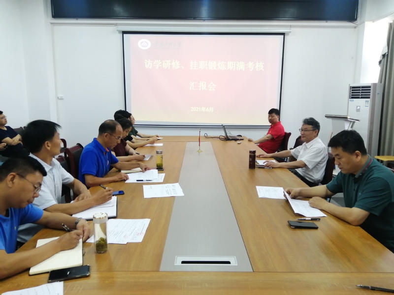 汇报会分个人汇报和质询答辩两个环节,考核人员分别从访学研修或企业挂职锻炼开展情况、取得的业绩成果、目标任务完成情况、下一步工作打算等方面进行详细的总结汇报。在汇报过程中,教授委员会成员查阅汇报人员相关支撑材料,并进行提问、点评、提建议。汇报会后,许德章院长对整体汇报情况作了总结,并对各位老师提出了几点要求:一是要珍惜和利用好研修、锻炼机会,努力提升自己;二是要积极融入到研修、挂职单位的具体工作,扎扎实实地做事,在完成考核目标的同时为企业做出实际贡献;三是加强与研修、挂职单位的交流合作,在联合申报科研项目、科技成果奖励以及科研平台建设等方面深度合作,为学院发展做出更大贡献。