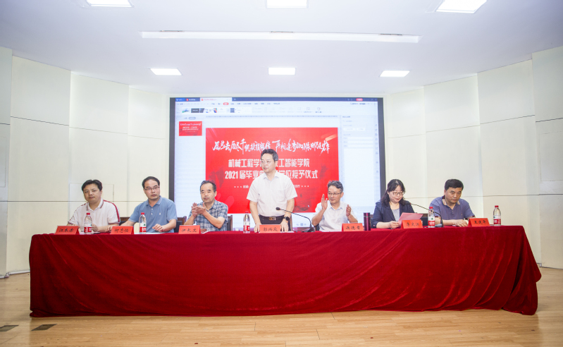 6月18日上午,机械工程学院(人工智能学院)2021届本科生毕业典礼在学术报告厅举行。校党委常委、副校长郭兴众,学院党政班子成员、各系部(中心)主任、教师代表、毕业班辅导员及毕业生代表等300余人参加典礼,共同分享收获的喜悦。典礼由学院党委副书记李文江主持。