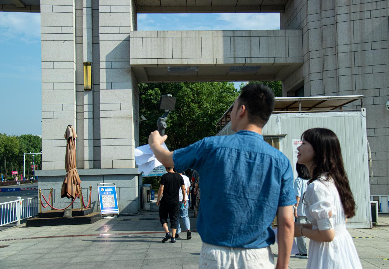 直播从安徽工程大学的南大门开始,杨顺首先向新生们介绍了学校的校史、校训和图书馆等,时慕天老师则详细讲解了进校报到的具体流程,包括测温、扫码、查询核酸检测阴性证明、安康码等。紧接着,两位老师步行至学院的报到点,2021级新生辅导员苏天一、李萨萨老师也已就位,在各自的岗位上,进行着新生报到流程的演练。面对镜头,李萨萨老师详细说明了报到所需材料和扫码查验学籍的操作流程,苏天一老师则对新生信息核对表和领取校园卡等物资的方式进行了讲解。