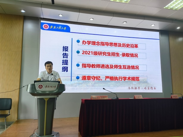 金秋送爽,丹桂飘香。9月15日下午,机械工程学院(人工智能学院)2021级研究生入学教育暨导师见面会在5J117隆重召开,院长许德章、副院长王建平及部分研究生导师出席了会议,联合培养单位导师则由研究生秘书吴路路组织腾讯会议形式线上参会,会议由研究生辅导员鞠锦勇主持。