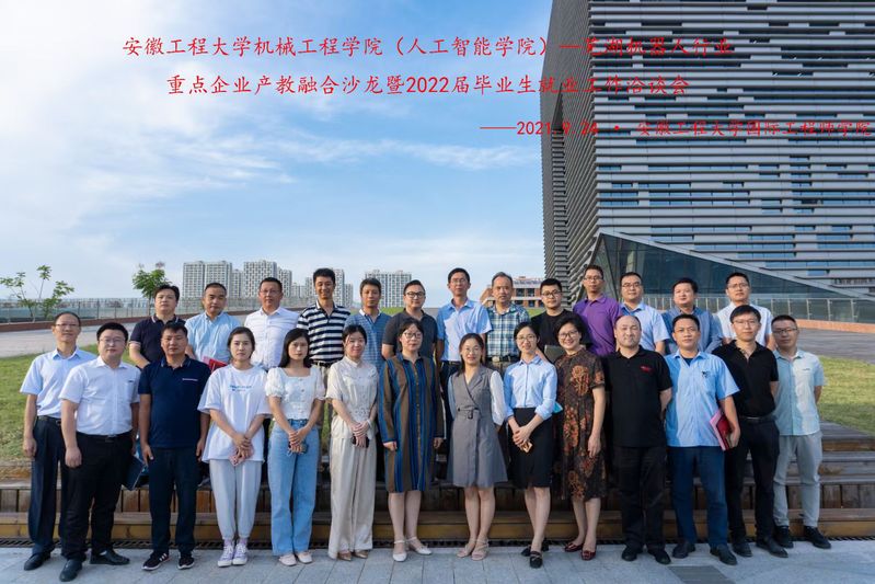 为深入贯彻落实习近平总书记关于人才工作系列讲话精神,进一步加强校企合作,深化产教融合,9月24日下午,“机械工程学院 人工智能学院—芜湖机器人行业重点企业”产教融合沙龙暨2022届毕业生就业工作洽谈会在安徽工程大学国际工程师学院举行。本次活动由机械工程学院(人工智能学院)与鸠江机器人产业联盟、滨江公司联合发起。机械工程学院(人工智能学院)党委书记伊长文、党委副书记李文江、副院长江本赤、鸠江区发改委战新办主任陶雨程、滨江智能装备产业发展有限公司部长杨博和芜湖市十七家机器人企业代表参与本次会议。会议由李文江主持。