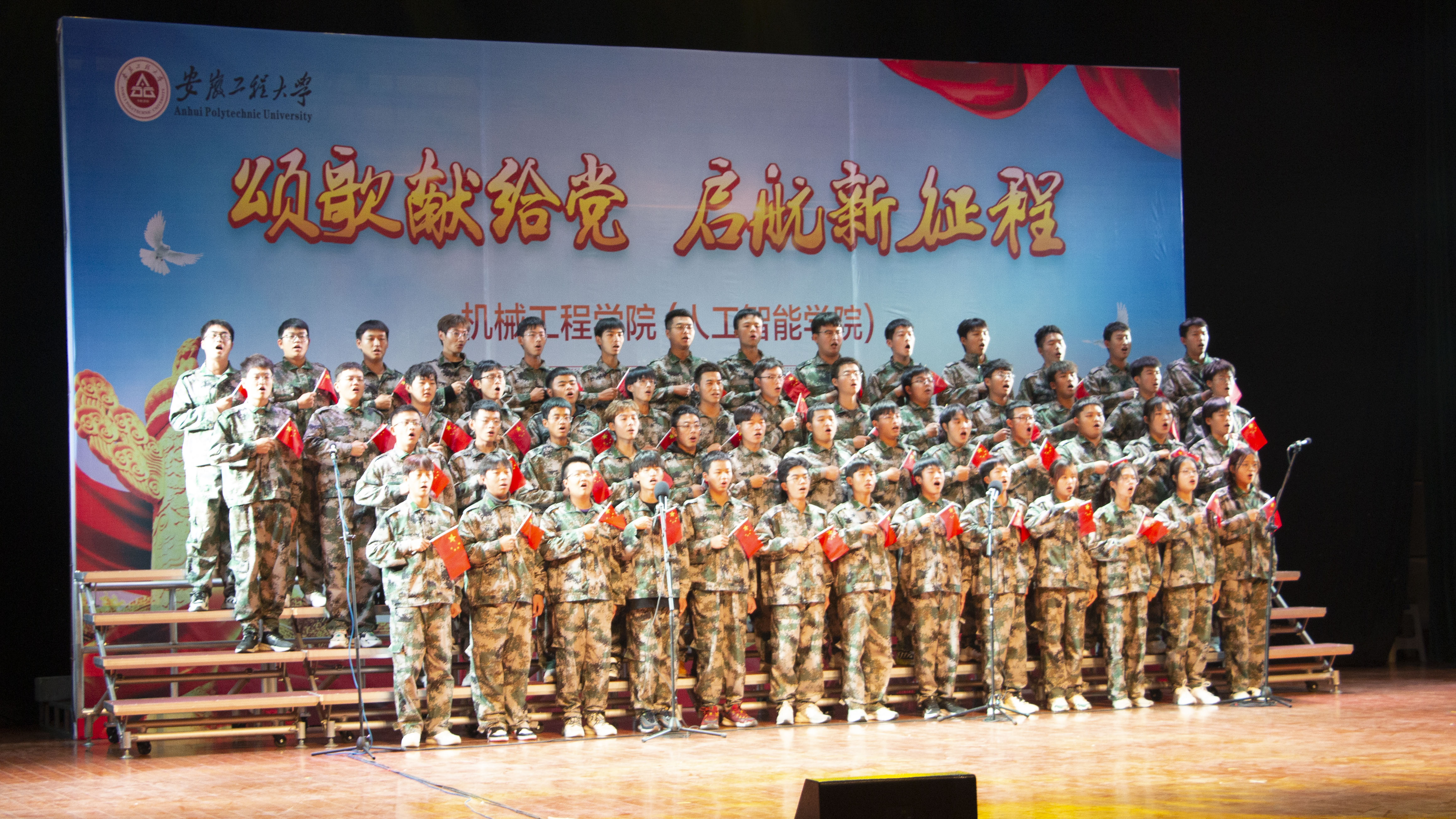 为庆祝中国共产党成立一百周年,推进党史学习教育深入开展,促进广大青年学生德智体美劳全面发展,激发爱党爱国爱校热情,10月29日晚,机械工程学院(人工智能学院)在师生活动中心举办2021级新生歌咏比赛暨军训先进个人表彰大会。学院邀请陈希、祝军、甘曼宁、奚琳四位老师担任评委,校学生处副处长刘伟,校团委副书记蔡金平,学院党委副书记李文江和何志恒,新生辅导员及部分新生军训教官莅临比赛现场,学院800多名2021级新生倾情表演。
