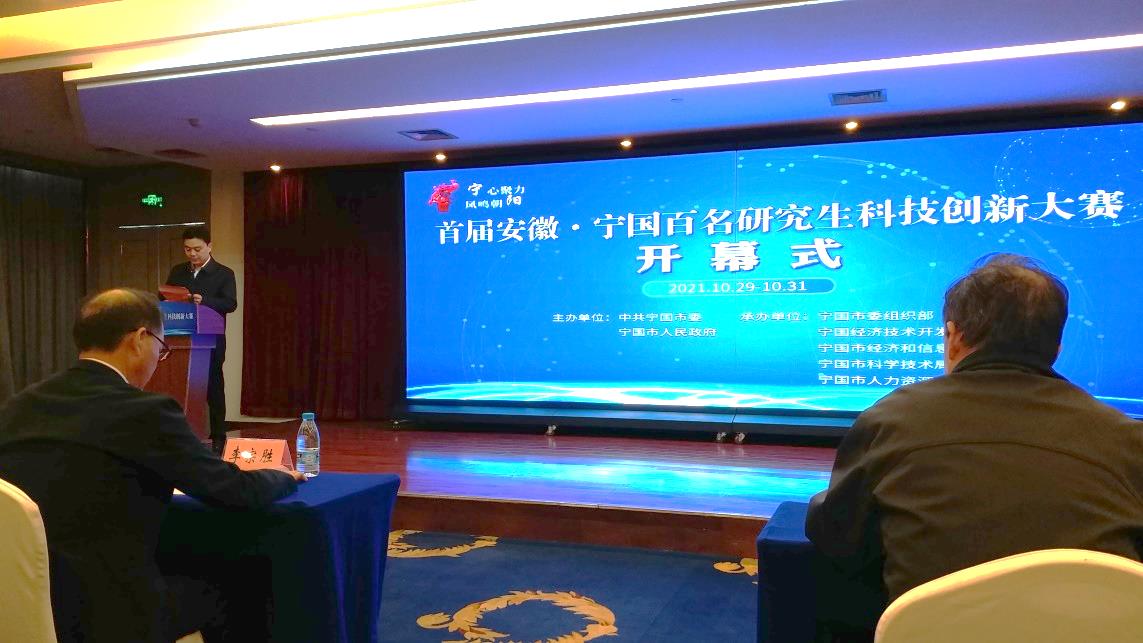 10月30日上午8时30分,大赛开幕式隆重举行,宁国市委常委、组织部部长李亚非、副市长梅骏国、安徽工程大学机械工程学院(人工智能学院)党委书记伊长文、安徽工程大学机械工程学院(人工智能学院)科研副院长王建平、常州工学院航空与机械工程学院院长郭魂、黄山学院科技处处长汪洪峰、安徽科技学院机械工程学院副院长乔印虎、合肥工业大学智能制造研究院副院长陈锋、安徽科技学院信息与网络工程学院副院长曹浩、部分导师及参赛研究生参加了开幕式。宁国市委常委、组织部部长李亚非致开幕辞,对大赛的如期举办表示热烈祝贺,对各位专家、老师和同学们的到来表示诚挚的欢迎。随后王建平副院长介绍了机械工程学院基本情况,简要说明了学院与宁国市相关企业的合作成果,强调了举办研究生科技创新大赛的意义,并祝大赛取得圆满成功。同时作为评审专家代表,王建平作表态发言。安徽工程大学学生杨广鑫代表参赛选手发言。