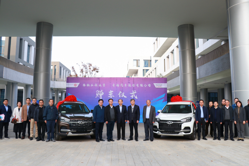 签约仪式后,李康代表奇瑞公司向安徽工程大学车辆工程专业定向捐赠两台瑞虎8试验车,王绍武代表学校接受捐赠。