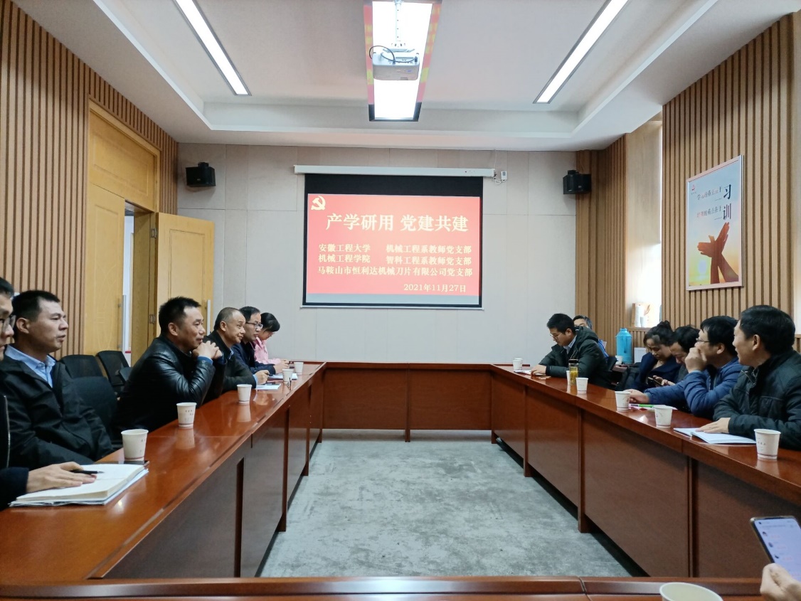 11月27日,机械工程学院(人工智能学院)机械工程系、智能科学与工程系教师党支部联合马鞍山市恒利达集团公司党支部开展党建共建与产学研对接活动。活动主要包含两部分内容,党员思想教育和党建引领发展座谈。