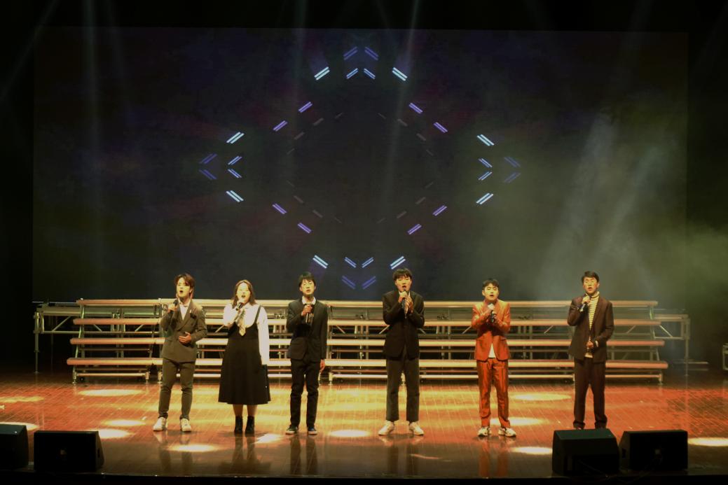 教职工歌曲联唱《十年》《可可托海的牧羊人》《安静》《少年》,悠扬的歌声娓娓道来青春的故事,带领在场师生回忆过往岁月;《雨耕映秀》将旗袍走秀与书法展示相结合,展现出澳门六合彩官方网址教师的魅力与涵养;朗诵《我爱你,我的国》慷慨激昂,尽情表达着对党和祖国的自豪与热爱之情;师生大合唱《复兴的力量》,唱出了对中国特色社会主义道路的坚定信仰,唱出了对祖国繁荣昌盛的美好祝愿,唱出了师生昂扬向上的精神风貌。在领导老师与演员们合影留念后,本次师生联欢会画上了圆满的句号。