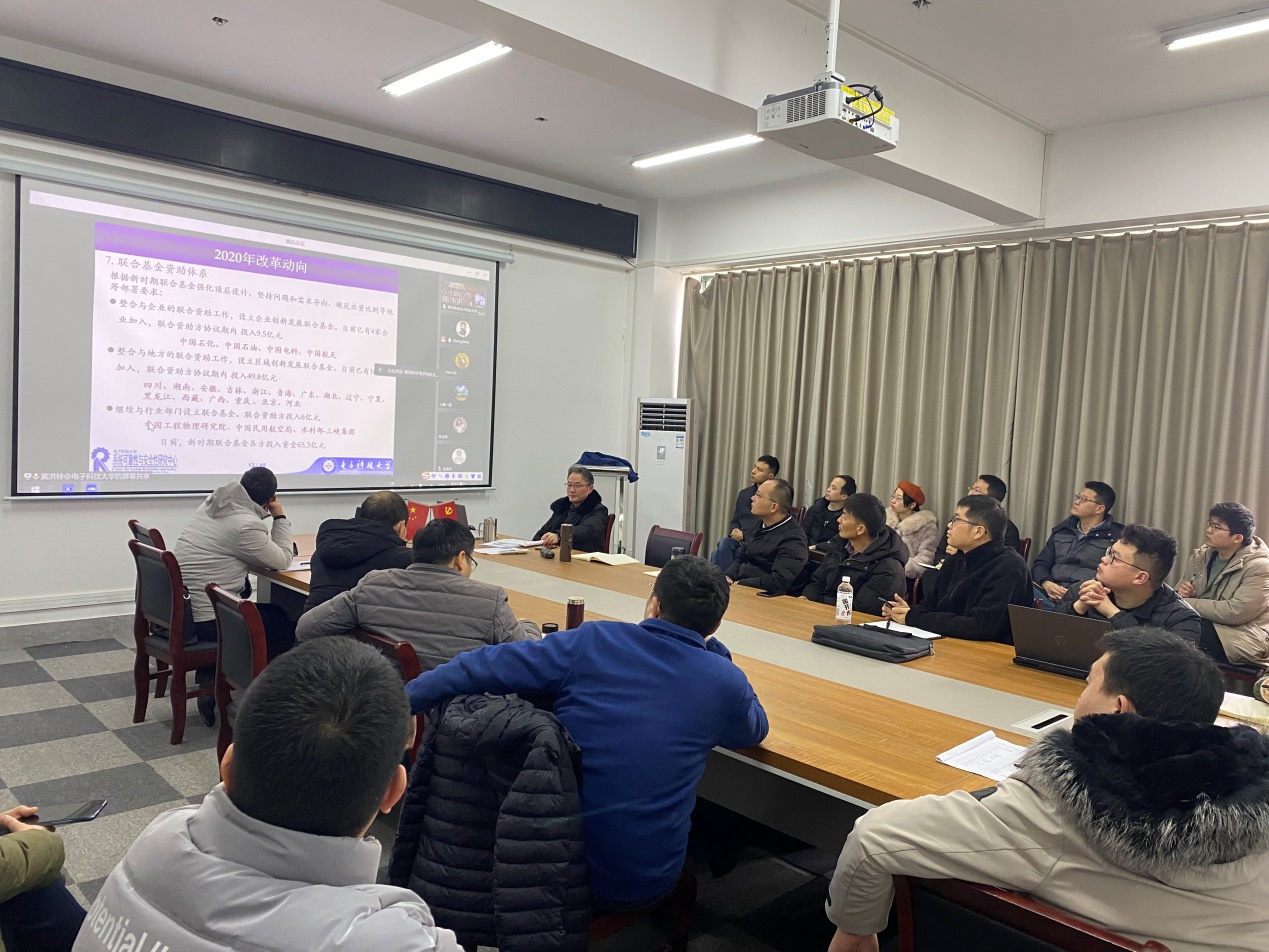 为了积极推动澳门六合彩官方网址2022年国家自然科学基金申报工作和提升教师科研水平,1月17日上午,学院邀请了电子科技大学国际合作与国际教育委员会主任、电子科技大学科学技术委员会副主任、国务院政府特殊津贴获得者、国家杰出青年科学基金B类获得者、博士生导师黄洪钟教授通过在线的形式作了“如何写好国家自然科学基金申请书”的专题报告会。报告会院长许德章主持,近40名教师参加。