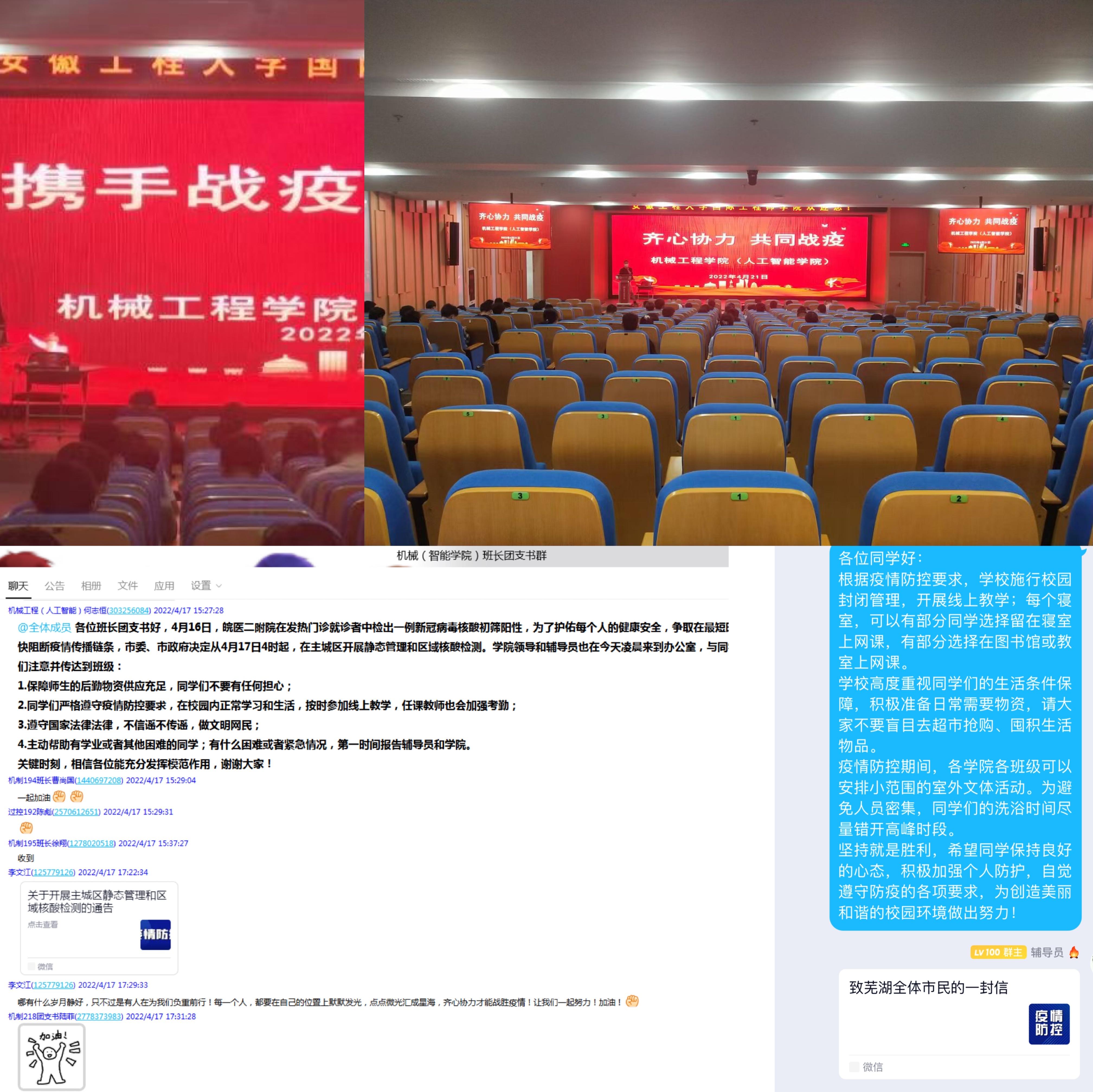 自4月17日凌晨芜湖市实行主城区静态管理以来,机械工程学院(人工智能学院)全体师生坚守在抗疫一线,积极响应芜湖市政府和学校号召,严格遵守社区管理要求,学院党委统筹谋划,全院师生同心战“疫”,互帮互助,凝心聚力,积极贡献自身的一份力量。