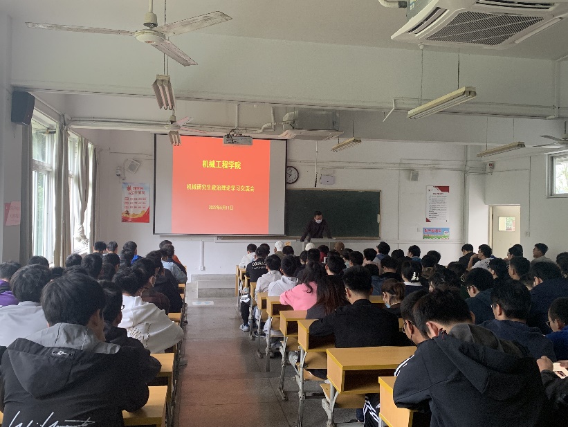 为深入学习贯彻习近平新时代中国特色社会主义思想,深刻领悟党的初心使命,分析当前新冠肺炎疫情防控形势,抓紧抓实疫情防控重点工作,5月11日,机械工程学院研究生在4教109召开了政治理论学习主题交流班会,全体在校研究生参加了本次会议,会议由研究生辅导员、支部书记鞠锦勇主持。
