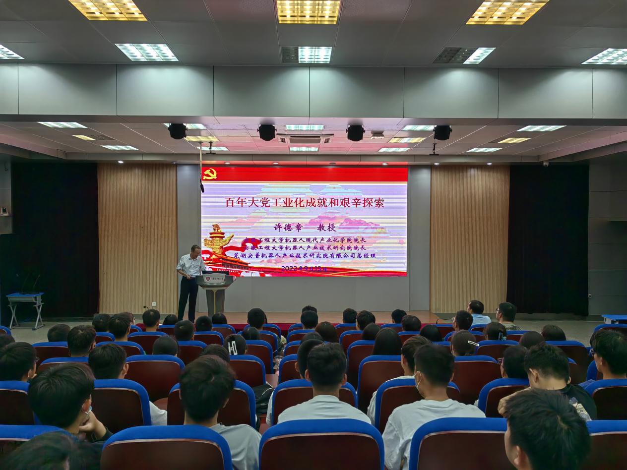 为帮助2022级新生尽快适应大学生活,增强专业认同感,把握人生航向,9月13日、15日晚,机械工程学院、人工智能学院邀请安徽工程大学机器人现代产业学院院长许徳章、芜湖市委史志研究室党史宣讲团成员冯晓鹏联合开展入学教育系列报告。报告在5J117进行开讲,10余个分会场进行直播,为700名新生带来别开生面的入学教育课程。