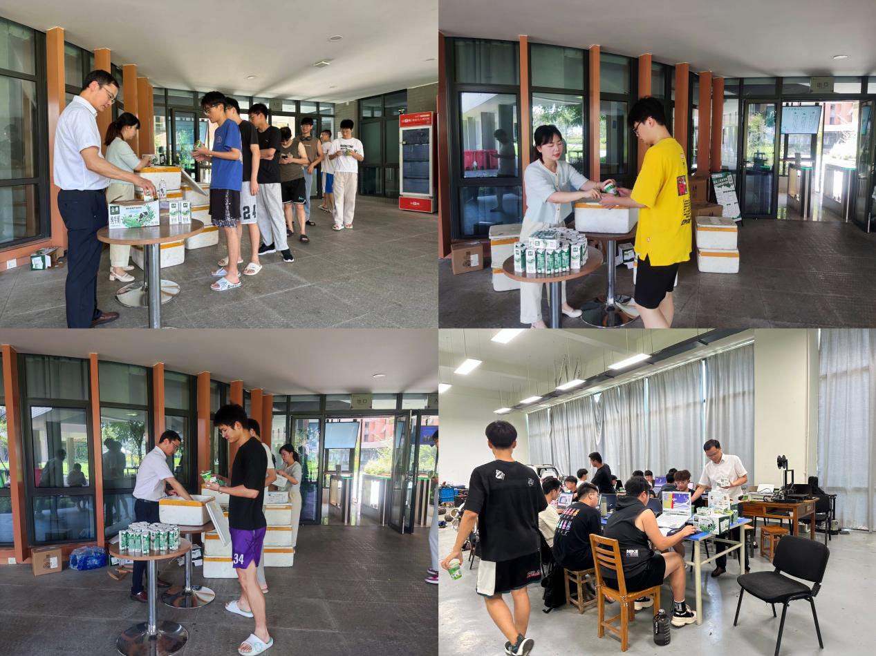 慰问过程中,学院老师深入学生宿舍、考研自习室、学科竞赛训练室、雷电车队工作室,仔细询问学生的学习生活情况,并为同学们送上牛奶、凉茶、冰镇绿豆沙等慰问品。在雷电车队学生工作室,学院党委副书记秦广虎与筹备参加2023年第八届中国汽车工程学会巴哈大赛的27名留校学生进行交流。他表示,学校非常关心留校学生的在校状况,学院会全力提供必要帮助与服务;希望同学们充分利用好暑假时间,努力提升自己;要注意劳逸结合,防暑降温;要自觉遵守暑期留校学生相关管理规定,注意防火、防电、防诈骗、防溺水等安全;遇到困难或有相关诉求要及时与指导老师或辅导员老师反馈。