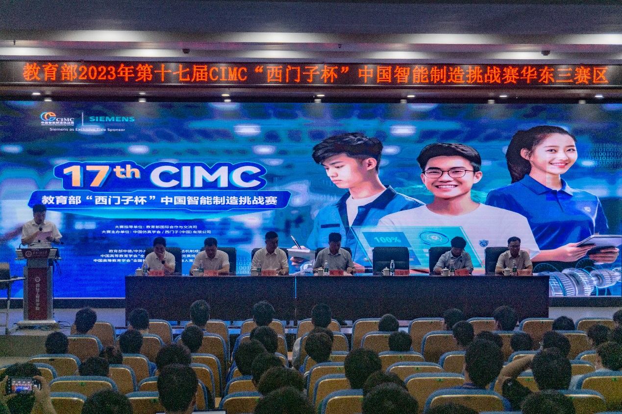 由中国仿真学会、西门子(中国)有限公司主办,安徽工程大学承办的2023年第十七届“西门子杯”中国智能制造挑战赛华东三赛区比赛于7月17日在安徽工程大学国际工程师学院隆重举行。安徽工程大学党委常委、副校长凤权,教务处副处长许钢,合肥金瓷机电科技有限公司董事长张有兵、“西门子杯”中国智能制造挑战赛数控数字化双胞胎赛项负责人党齐、机械工程学院领导班子以及参赛高校师生代表300余人参加了开幕式。开幕式由机械工程学院院长王建平教授主持。