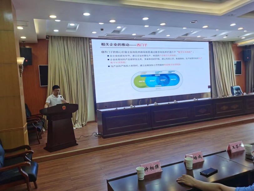 机械工程学院时培成教授和钟相强教授分别进行了“新能源汽车发展方向以及对供应链的影响”、“数字孪生技术-助力汽车零部件智能制造”专题讲座,由于讲座内容与宁国市主要产业高度契合,在场的企业家们全神贯注,聚精会神地聆听两位教授的精彩报告。
