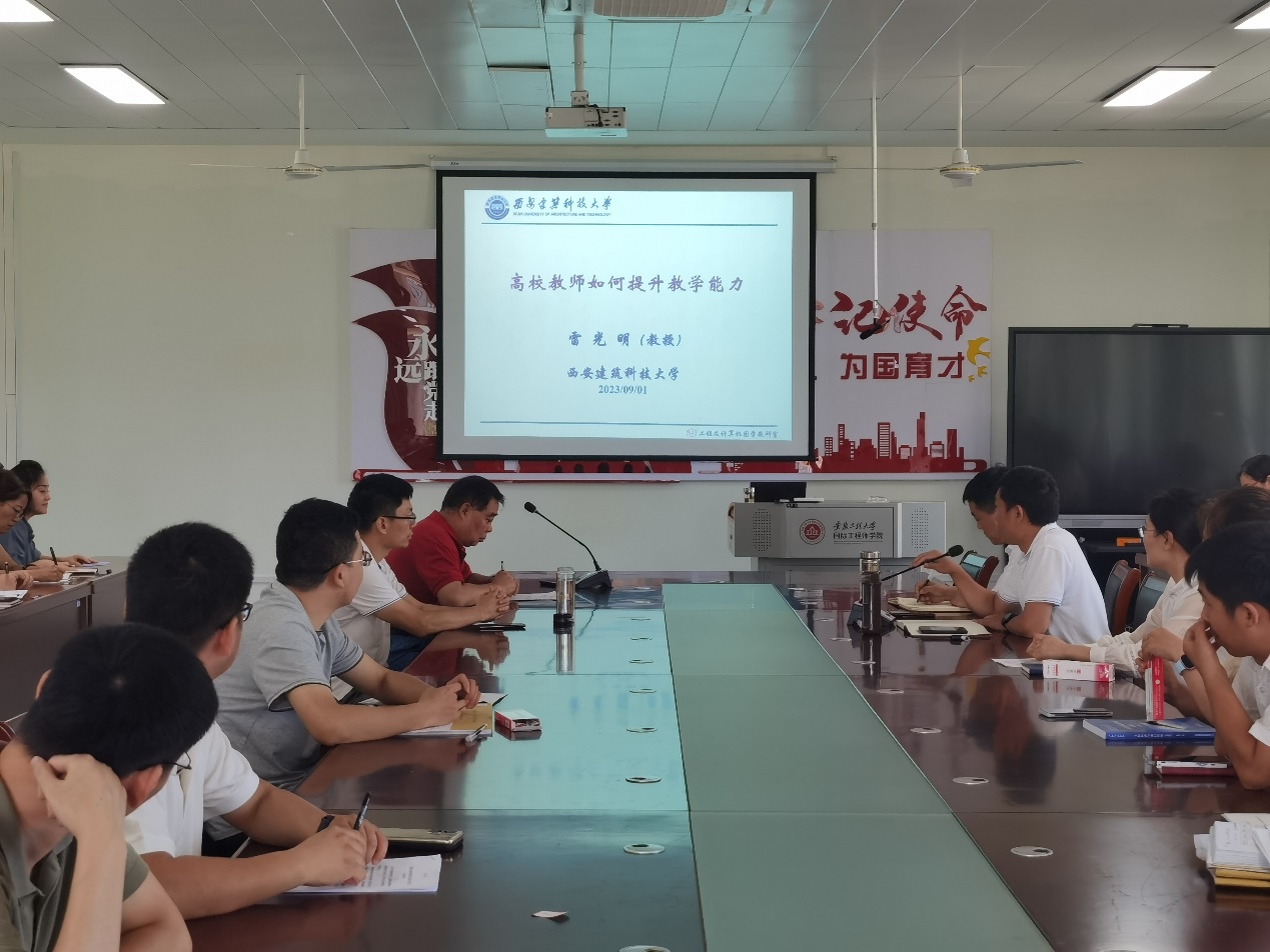 9月2日,陕西省教学名师、西安建筑科技大学雷光明教授应邀来澳门六合彩官方网址,作了题为《高校教师如何提升教学能力》的专题报告。机械工程学院院长王建平及全体教师现场聆听了报告。报告会由副院长王建彬主持。
