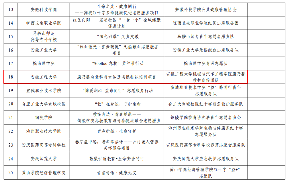 安徽省红十字会公布2025年“生命教育・益行计划”高校红十字志愿服务项目和青年发展计划支持名单,澳门六合彩官方网址-澳门六合彩网址 康乃馨救护宣传团队申报的“康乃馨急救科普宣传及实操技能培训项目”成功入选,获得专项资金支持。