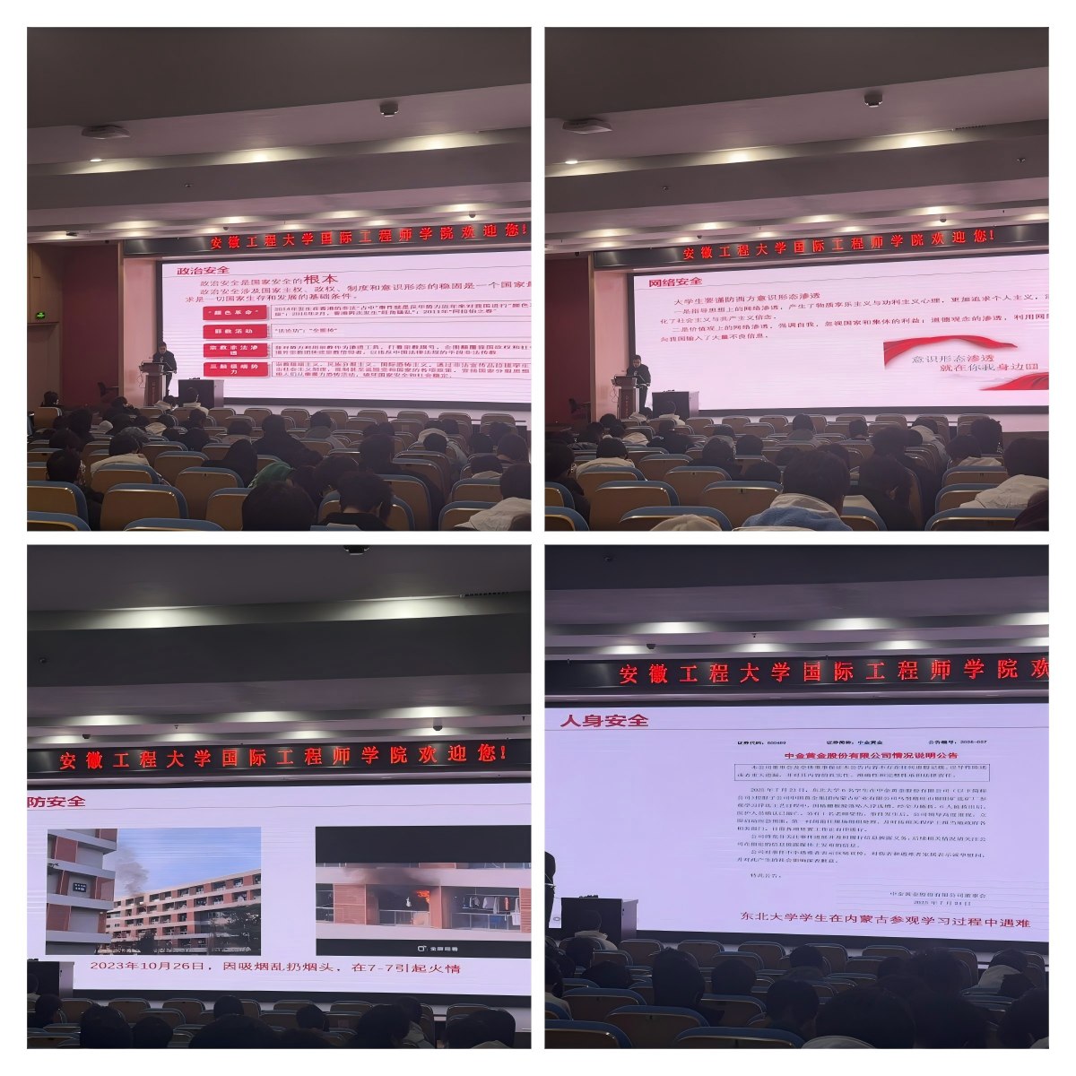 为深入落实学校“平安社区,献礼校庆”安全教育活动要求,12月19日,澳门六合彩官方网址 在国际工程师学院校区赤铸报告厅举办校园安全知识讲座。本次讲座由学院辅导员许典舟老师主讲,近300名学生参加。