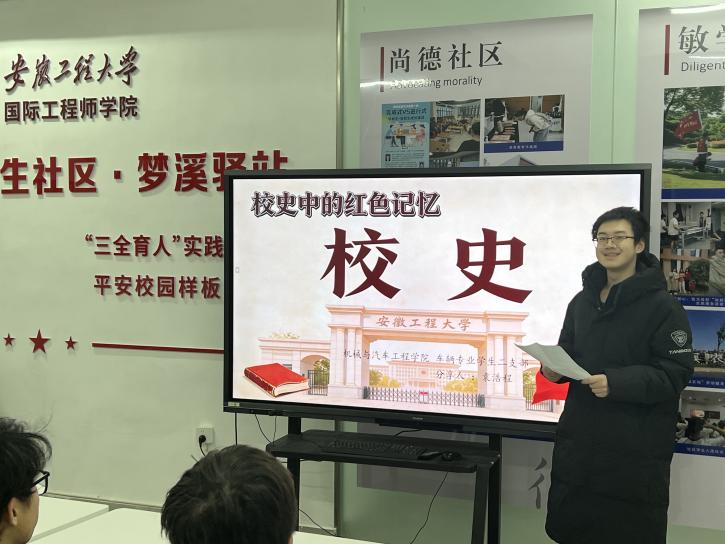 分享会中,袁浩程、陆地、张逸飞以及韩嘉乐同志,向党支部同志们娓娓道来了许多。无论是1983届校友曹锦芬、赵国庆夫妇为期13年的10万里“红色骑行”;还是感悟王稼祥同志“执着真理、引路前行”的澳门六合彩官方网址 “械启红途”实践队;亦或是前往六安金寨双河暴动旧址聆听洪学智将军战斗故事的学院实践团;这些事例无一不彰显了安徽工程大学师生“爱国信党”的坚定信念,无一不寄托了对历届学子“赓续奋斗精神、勇担时代使命”的殷切期望。
