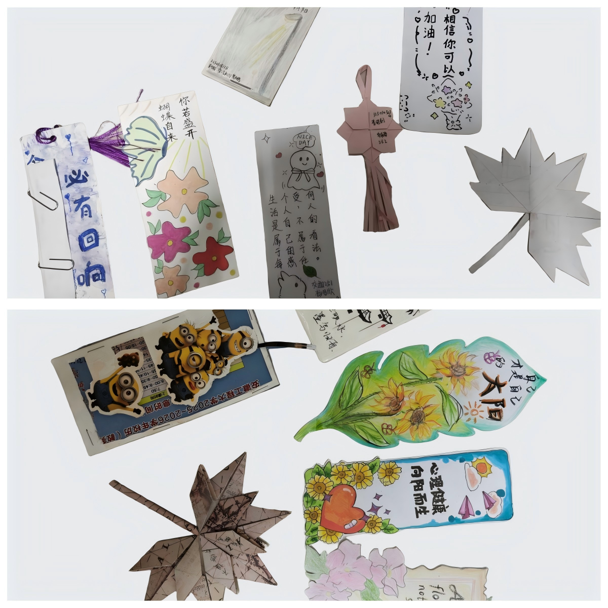 “心灵书签”活动鼓励学生通过手工制作表达内心情感。同学们围绕心理健康主题,精心设计、绘制书签,搭配启迪心灵的名言警句,在方寸之间传递积极能量,展现了学生们的创意与情感表达能力。