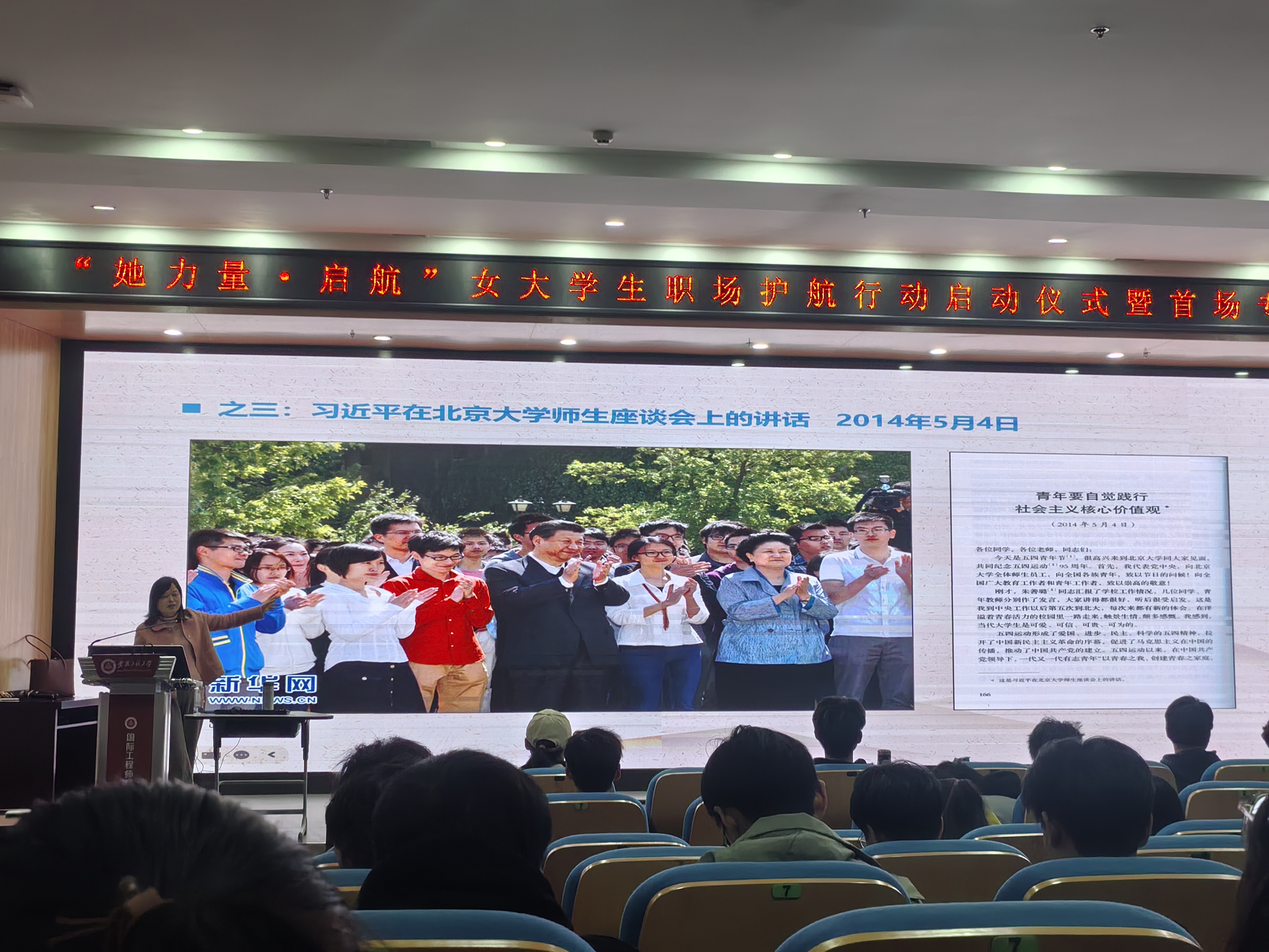 3月29日晚,校党委宣传部(统战部)副部长徐征以《做好新时代党的宣传思想工作》为题作专题辅导报告。报告从引言切入,系统阐述了党的宣传思想工作的地位作用、根本任务和原则方法,深入分析了当前宣传思想工作面临的新形势新挑战,并就怎样做好高校宣传思想工作提出了具体路径。徐征表示,宣传思想工作是党的一项极端重要的工作,高校是宣传思想工作的重要阵地。他结合当前复杂形势,提醒预备党员要增强政治敏锐性和鉴别力,在校园网络阵地、朋辈交流中弘扬主旋律、传播正能量,自觉维护校园思想安全,做党的政策主张的忠实宣传者。