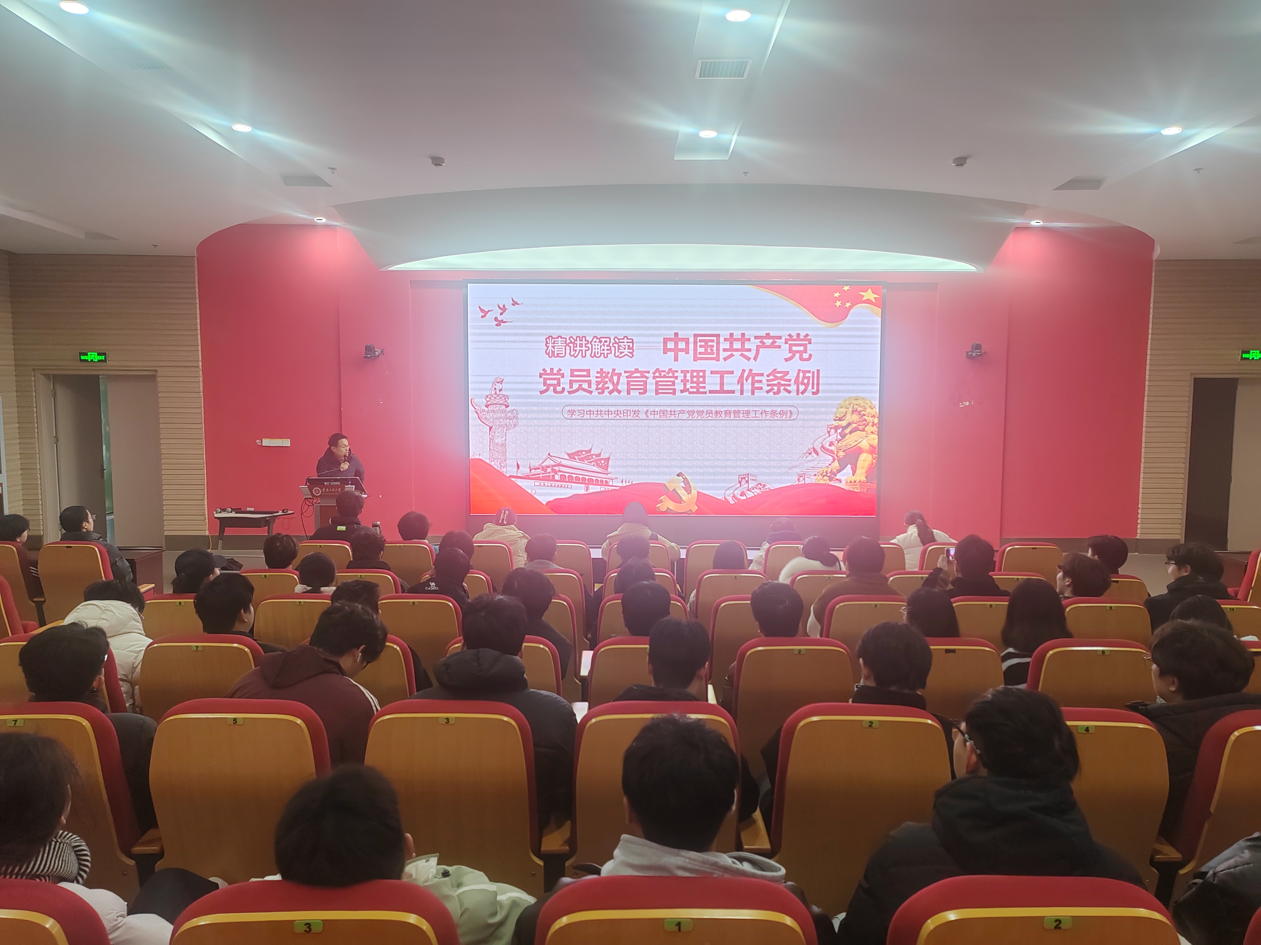 3月18日下午,党支部书记许典舟为学员系统解读《中国共产党党员教育管理工作条例》。许典舟围绕条例出台背景、主要内容、重点要求等方面,详细讲解了党员教育管理的基本原则、党员日常教育管理的主要方式以及监督处置等相关规定。他强调,预备党员要增强纪律意识和规矩意识,自觉接受党组织的教育、管理和监督,以《条例》为标尺规范自身言行,以实际行动向合格党员标准看齐。